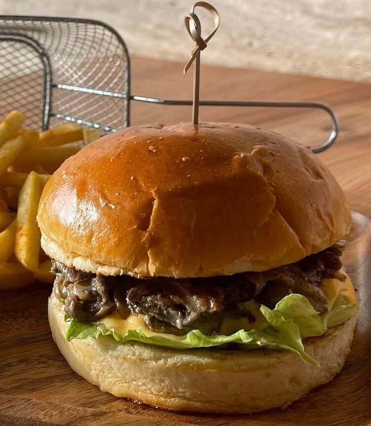 برجر لحم مشوي مغطى بشرائح فطر سوتيه وصلصة كريمية لذيذة.