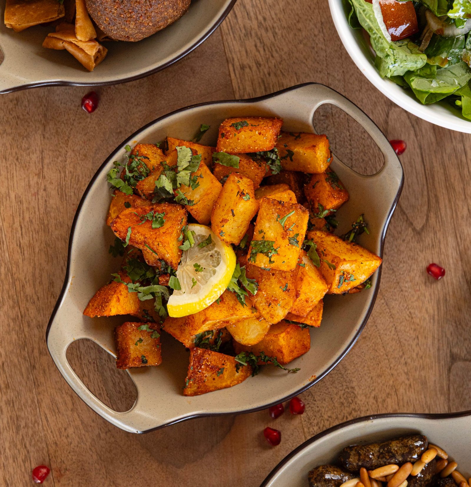 طبق لبناني شهي مكون من مكعبات البطاطا المقرمشة المقلية، مغطاة بخليط من الثوم، الكزبرة الطازجة، وعصير الليمون مع رشة فلفل حار لإضافة نكهة نارية ولذيذة.