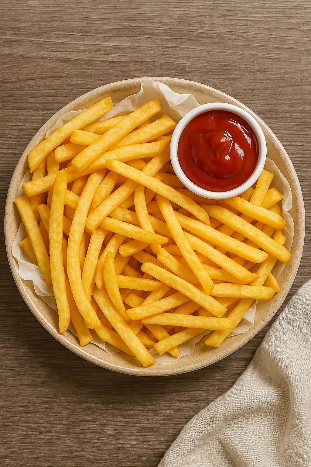 بطاطا مقطعة ومقلية حتى تصبح ذهبية ومقرمشة بوزن 200 جرام.
