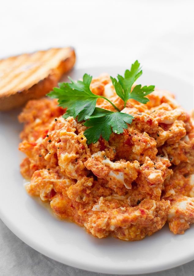 بيض مطهو مع صلصة طماطم طازجة وفلفل وبصل متبّل بالبهارات العربية.