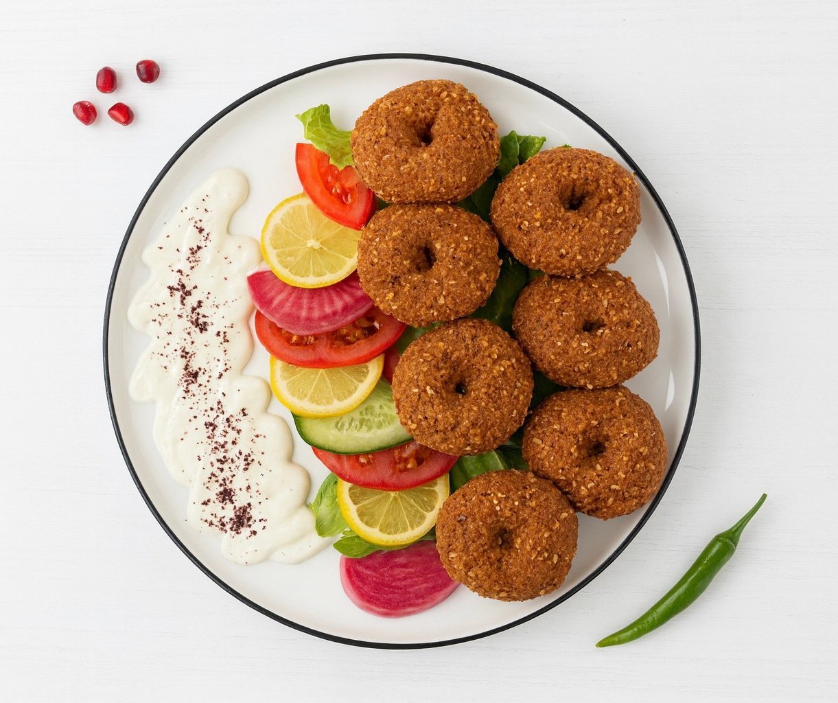 سبع قطع فلافل مقلية حتى تصبح مقرمشة من الخارج وهشة من الداخل.