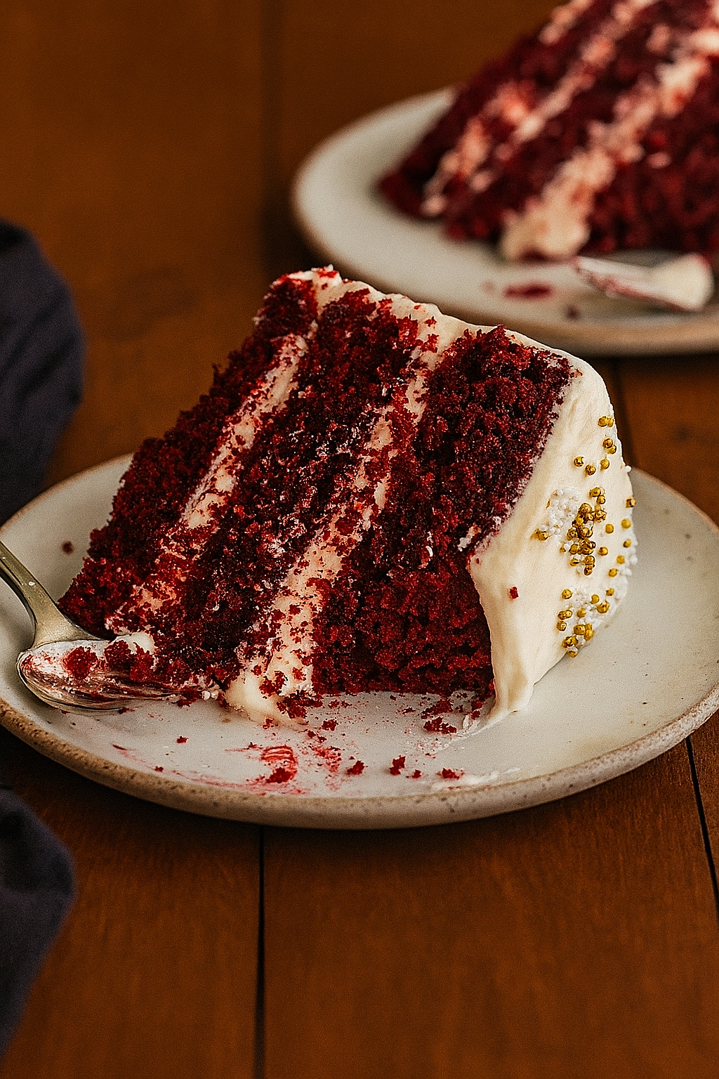 كيك رد فلفت طري بنكهة الكاكاو الخفيفة، مغطى بطبقة كريمية ناعمة.