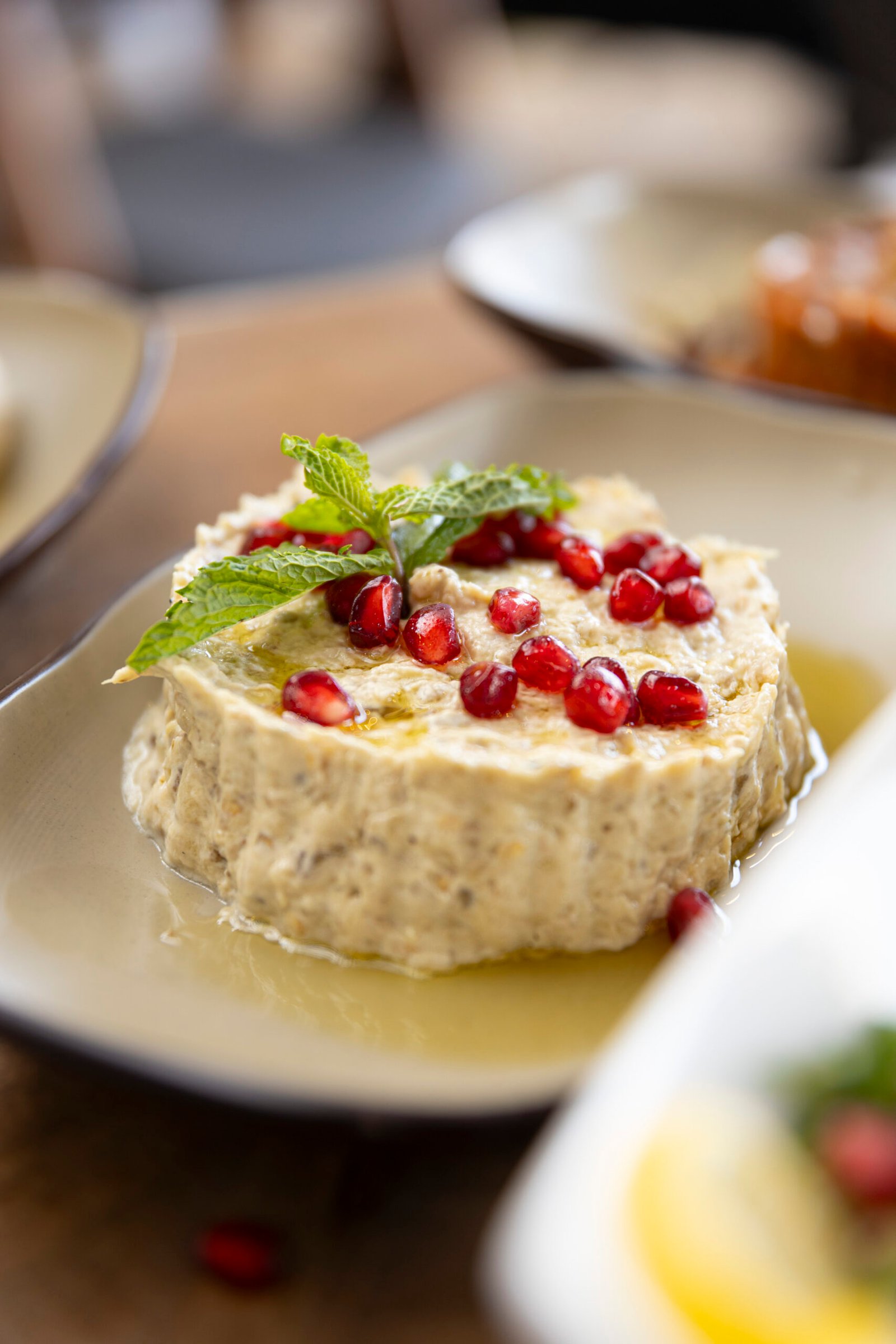 متبل باذنجان هو طبق من الباذنجان المشوي المهروس، يُضاف إليه الطحينة، الثوم، عصير الليمون، وزيت الزيتون، ويُزين بالرمان.